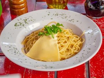 Pasta sheets in layers with bolognese sauce, minced meats and mozzarella cheese covered in parmesan cheese (a house favorite).